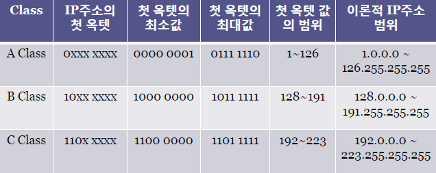 이렇게 class를 나누는 이유는.. 주소를 보고 네트워크의 크기를 짐작할 수 있게끔 하도록 하는 것