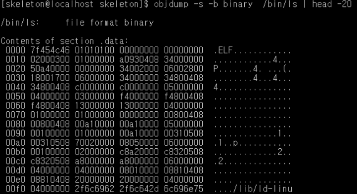 바이너리만 보고싶다. 그럴 때는 -b 옵션을 주면 된다.