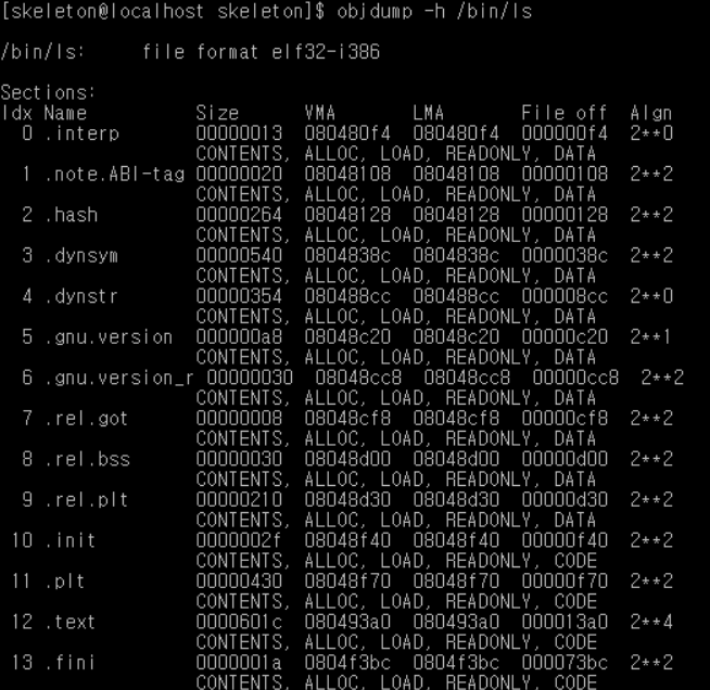 * objdump -h