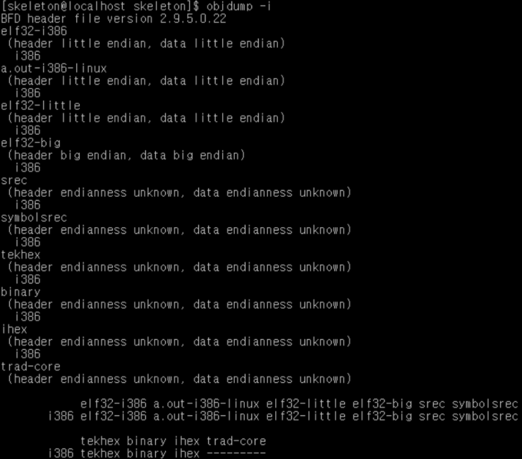 지정 가능한 오브젝트 파일 형식을 보는 명령어도 있다. -i 플레그를 주면 된다.