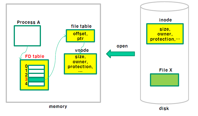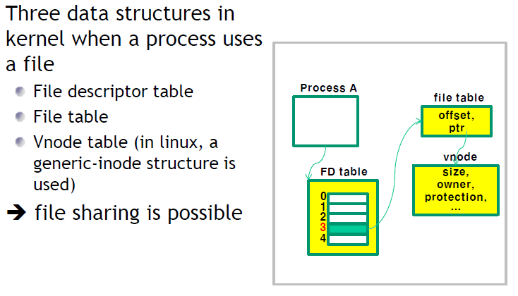 그리고 난 다음 파일에 대한 접근을 용이하게 하기위해 file descriptor 라는 개념을 도입한다.