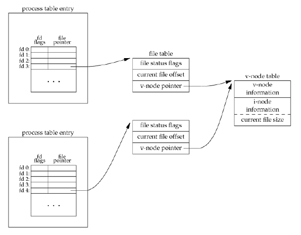 v-node는 파일마다 할당되는 것이다. 그래서 같은 파일을 사용하는 프로세스들은 v-node를 공유함.