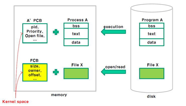 FCB는 File Control Block, PCB는 Process Control Block 이다.