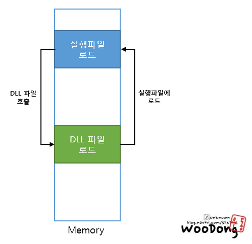 메모리에 소스코드와 DLL파일을 함께 올려서 상황에 따라 다르게 주소를 호출하는 방식이다.