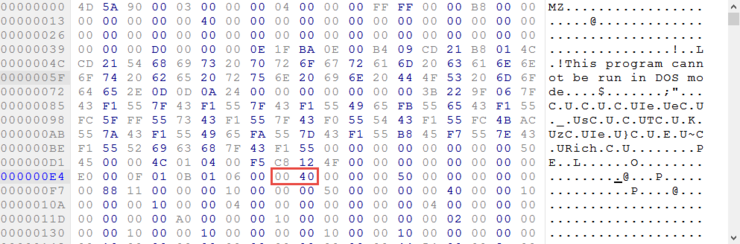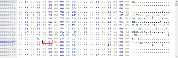 "This program cannot be run in DOS mode" 라는 문자열을 띄우는