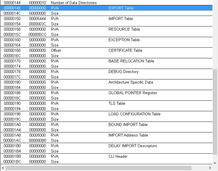 가장 위에 Number of Data Directories 에 값이 0x10으로 되어 있음.
