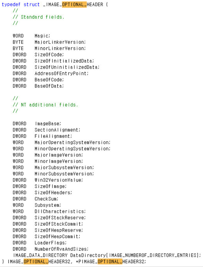(이건 나중에 OPTIONAL_HEADER 설명에서 자세히 하겠음)