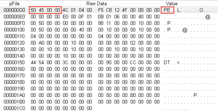 그게 바로 Signature다. 0x45500000 4바이트 할당되어 있다.