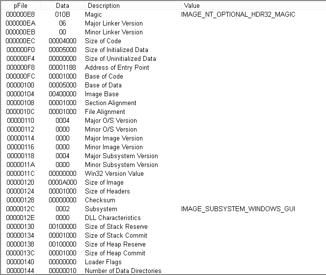 제일 중요한 OPTIONAL_HEADER가 등장했다. 여기에선 설명할 부분이 좀 많다.