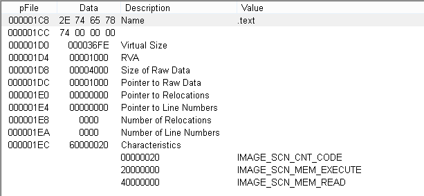 #define IMAGE_SCN_MEM_EXECUTE 0x20000000 // 실행권한이 있는 섹션
