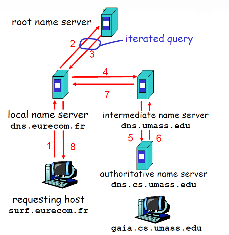 이거는 최초에 루트 네임서버에 질의를 하면 이 친구가 재귀적인 방식으로 책임감 있게 찾아주고