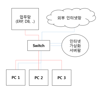 pc 등의 단말기를 가상화하여 인터넷망과 업무망을 분리하는 것이다.