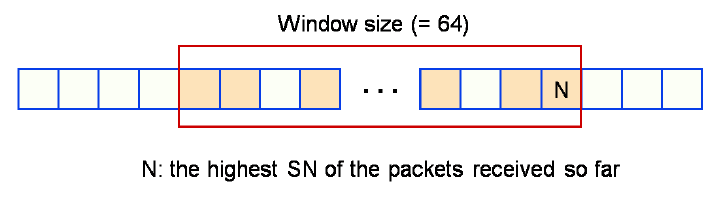 3. 수신된 패킷의 SN이 Window의 최소값보다 작거나 MAC 검증이 안되면 패킷을 버린다.