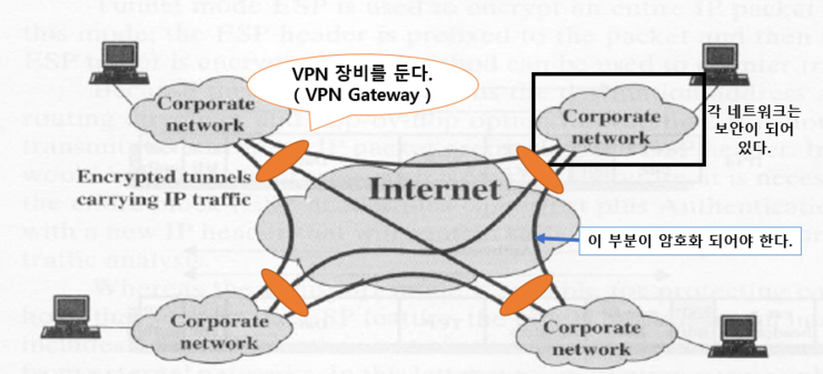 그림을 보면 부연설명이 좀 되어 있다. 보다시피 저건 각각 네트워크를 보안 체널로 묶는 그림이다.