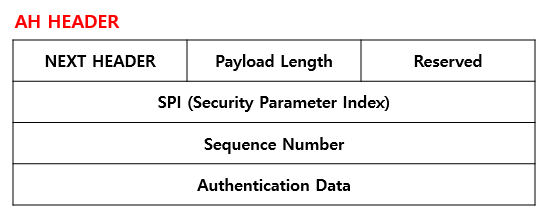 기존에 패킷에는 AH Header가 존재하지 않지만 IPsec을 사용하면 저렇게 중간에 AH 헤더가 삐집고 들어간다.