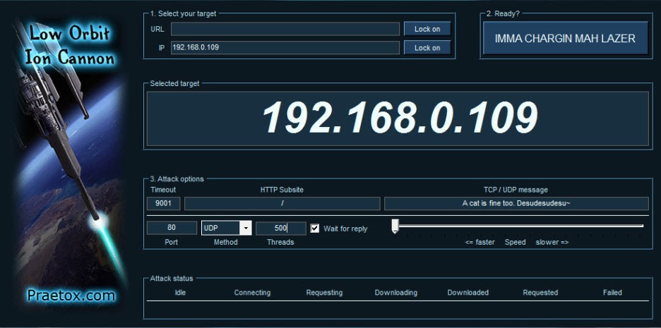 LOIC(Low Orbit Ion Cannon) 툴을 이용하여 UDP Flooding을 테스트 해본다.