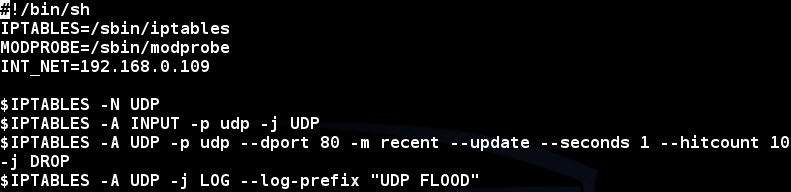 - $IPTABLES -A UDP -p udp --dport 80 -m recent --update --seconds 1 --hitcount 10 -j DROP