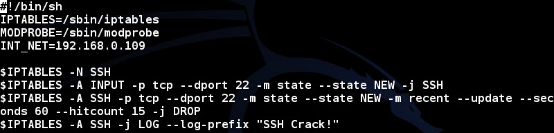 -$IPTABLES -A SSH -p tcp --dport 22 -m state --state NEW -m recent --update --seconds 60 --hitcount 15 -j DROP : 1분동안 같은 사용자가 15번 이상 SSH 접속 시도를 하였다면 DROP 시킨다.