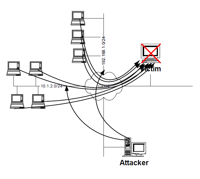 (공격자는 수신지 ip를 Network ID로 하거나 broadcast 주소로해서 보낸다.)