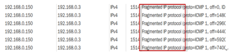 ping의 사이즈가 커서 fragment로 조각조각 나서 전송되는 모습이 나옴.
