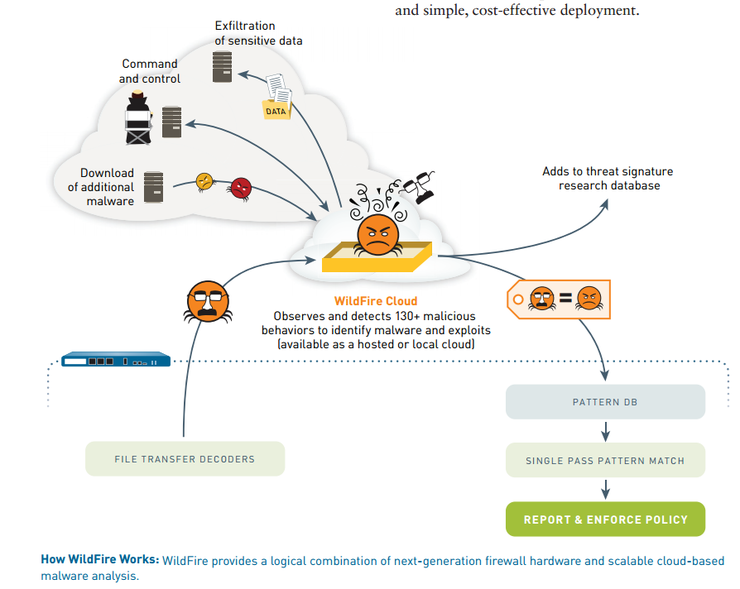 WildFire는 알려지지 않은 위협에 대하여 여러가지 기능을 수행할 수 있는 기술이다.