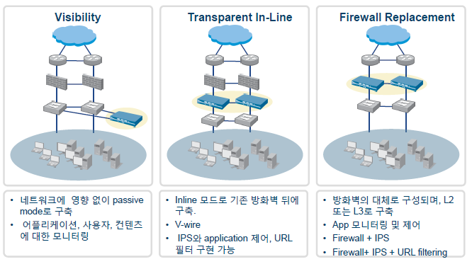 * 트래픽 분류, User/group 맵핑, 컨텐츠 분석 ==> 하나의 통합된 정책으로 관리