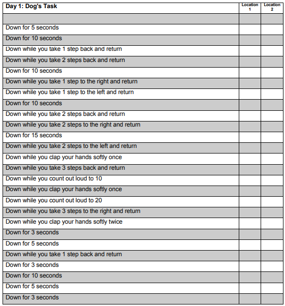 이런 과정들의 각 단계별로 강아지가 완벽하게 수행할 경우 다음 스탭으로 넘어가는 것임