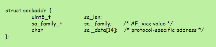 먼저 일반적인 소켓 주소 구조체인 sockaddr 를 보자.