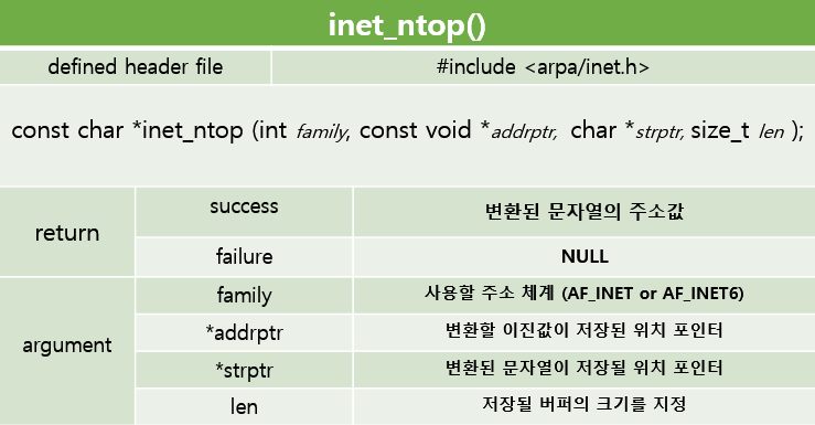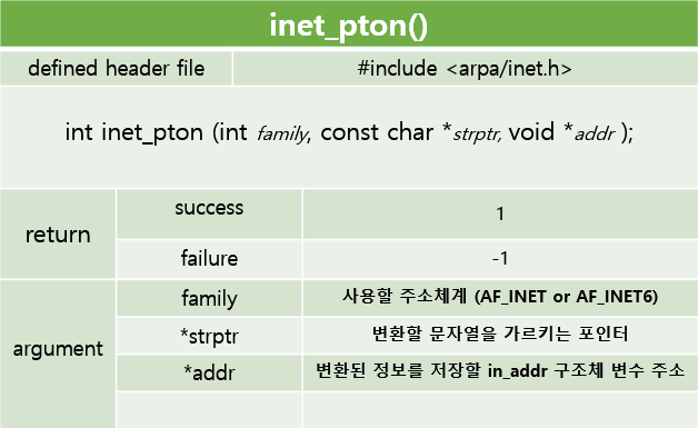 한번 알아보자. inet_pton() 과 inet_ntop() 이다. 얘들은 IPv4, IPv6 모두 핸들링 가능하다.