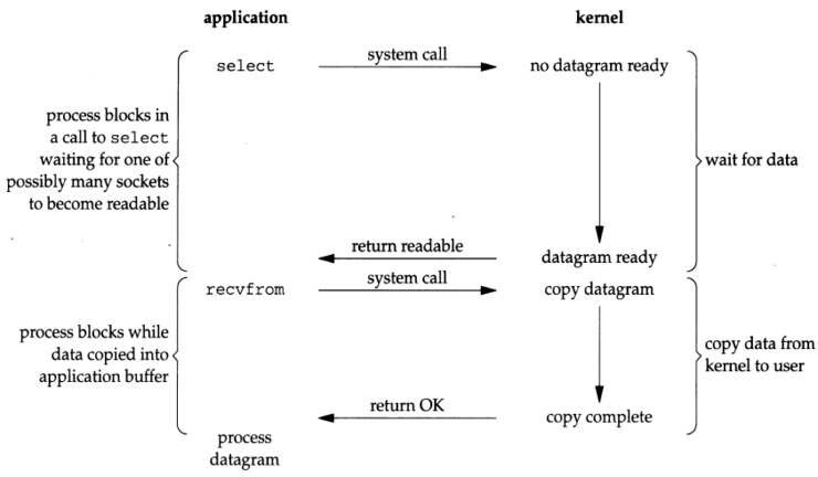 2. select가 소켓이 읽기 가능하다고 return하면 recvfrom을 호출하여 데이터그램을 복사한다.
