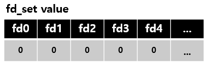 FD_ZERO(&value); // 변수가 초기화 될 것이다. 아래 그림처럼 된다.