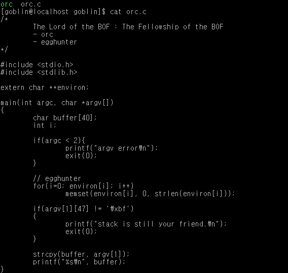 스택 영역에만 공격하라는 말이다. argv[1]이 buffer로 복사되니까.