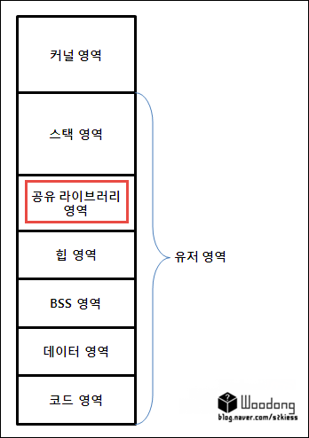 공유 라이브러리 영역은 아래 그림처럼 스택 아래에 있다.